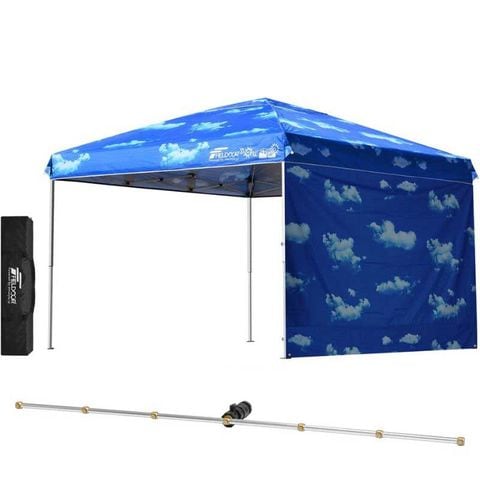 FIELDOOR ワンタッチタープテント 3m (標準:ブルースカイ/スチール/4点脚ロック/Cミストシャワー付/サイドシート1枚付) 横幕セット 頑丈 テント タープ 300 3.0m ワンタッチテント ワンタッチタープ 大型 簡単 UVカット 撥水 日よけ アウトドア キャンプ [送料無料]