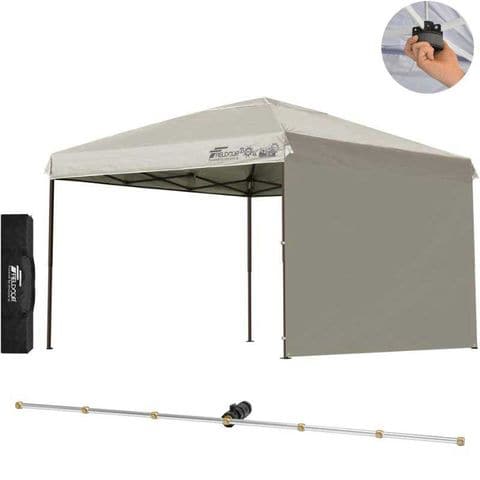 FIELDOOR ワンタッチタープテント 3m (標準:ライトベージュ/スチール/センターロック/Cミストシャワー付/サイドシート1枚付) 横幕セット 頑丈 テント タープ 300 3.0m ワンタッチテント ワンタッチタープ 大型 簡単 UVカット 撥水 日よけ アウトドア キャンプ [送料無料]