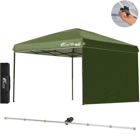 FIELDOOR ワンタッチタープテント 3m (標準:カーキ/スチール/センターロック/Cミストシャワー付/サイドシート1枚付) 横幕セット 頑丈 テント タープ 300 3.0m ワンタッチテント ワンタッチタープ 大型 UVカット 撥水 日よけ イベント アウトドア キャンプ [送料無料]