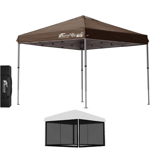 FIELDOOR ワンタッチタープテント 2.5m (標準:ダークブラウン/アルミ/4点脚ロック/Bバグガード付) 軽量 テント タープ ワンタッチテント ワンタッチタープ UV加工 撥水 ベンチレーション 収納バッグ付 日よけ キャンプ バーベキュー 送料無料