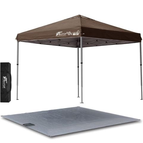 FIELDOOR ワンタッチタープテント 2.5m (標準:ダークブラウン/アルミ/4点脚ロック/Cグランドシート付) 軽量 テント タープ ワンタッチテント ワンタッチタープ UV加工 撥水 ベンチレーション 収納バッグ付 日よけ キャンプ バーベキュー 送料無料