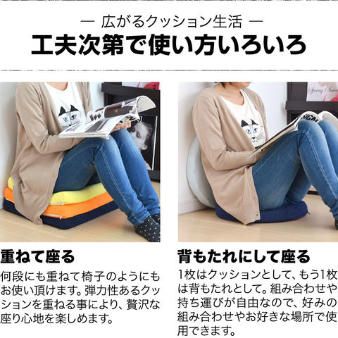 座布団 クッション 低反発 (ミッドナイトブルー/スクウェアタイプ/角型) 高反発 両面 2層 コンビクッション 40×40cm×厚さ5cm 四角 洗えるパイルカバー 座ぶとん 代わり 腰 お尻 フロアクッション 椅子用 チェアクッション シートクッション 送料無料