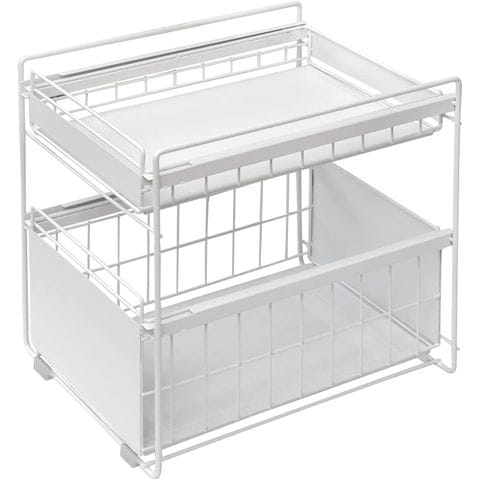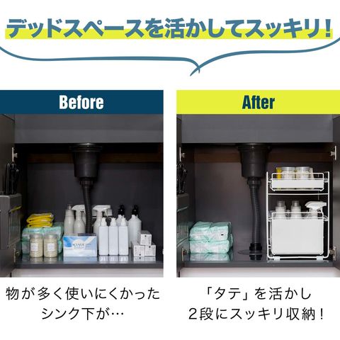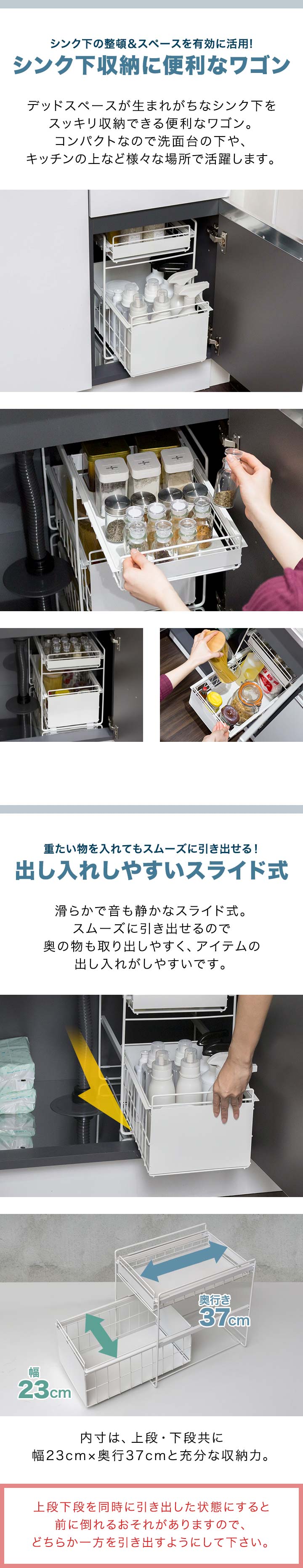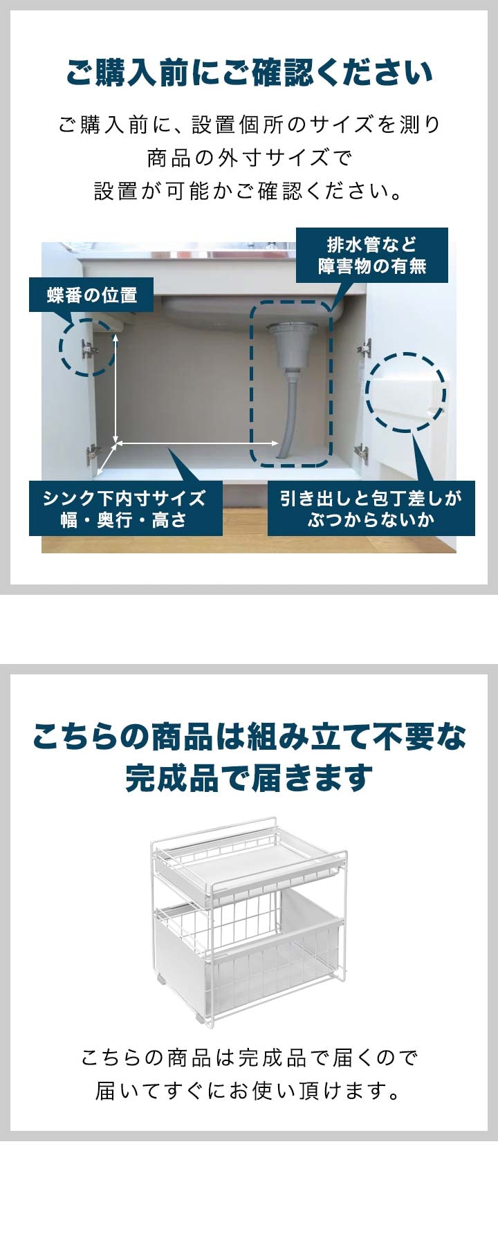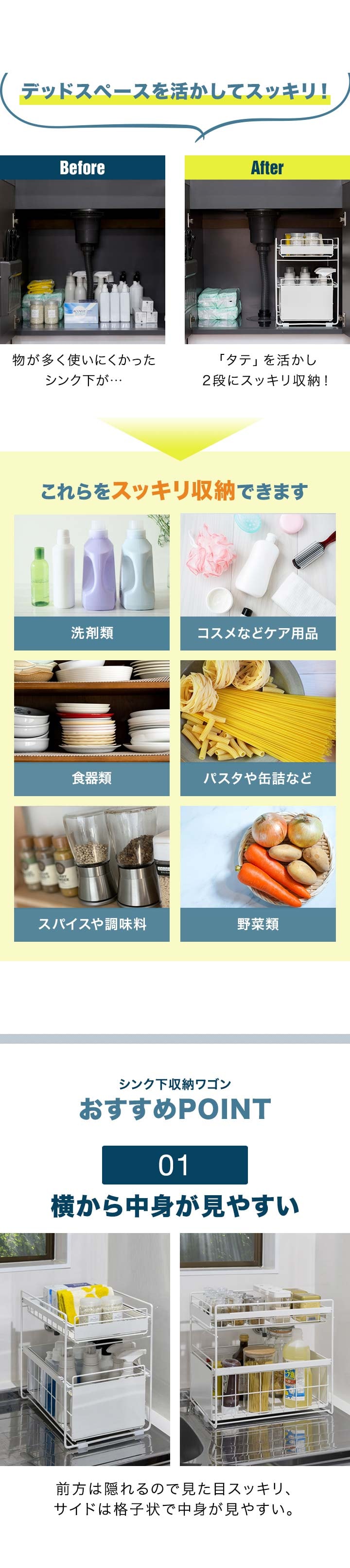 シンク下 収納 ラック 引き出し スライド スリム スライドラック キッチン収納 完成品 2段 幅28.5m 棚 かご バスケット 調味料 食器 調理器具 洗面台下 キッチンラック シンク下収納ラック 収納棚 隙間収納 おしゃれ ホワイト 送料無料