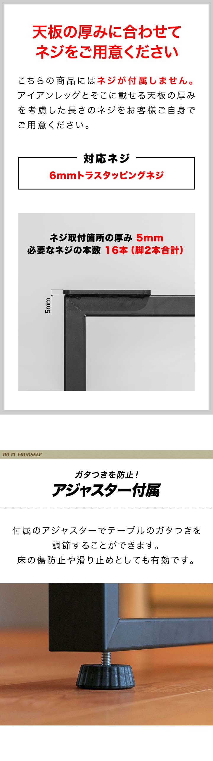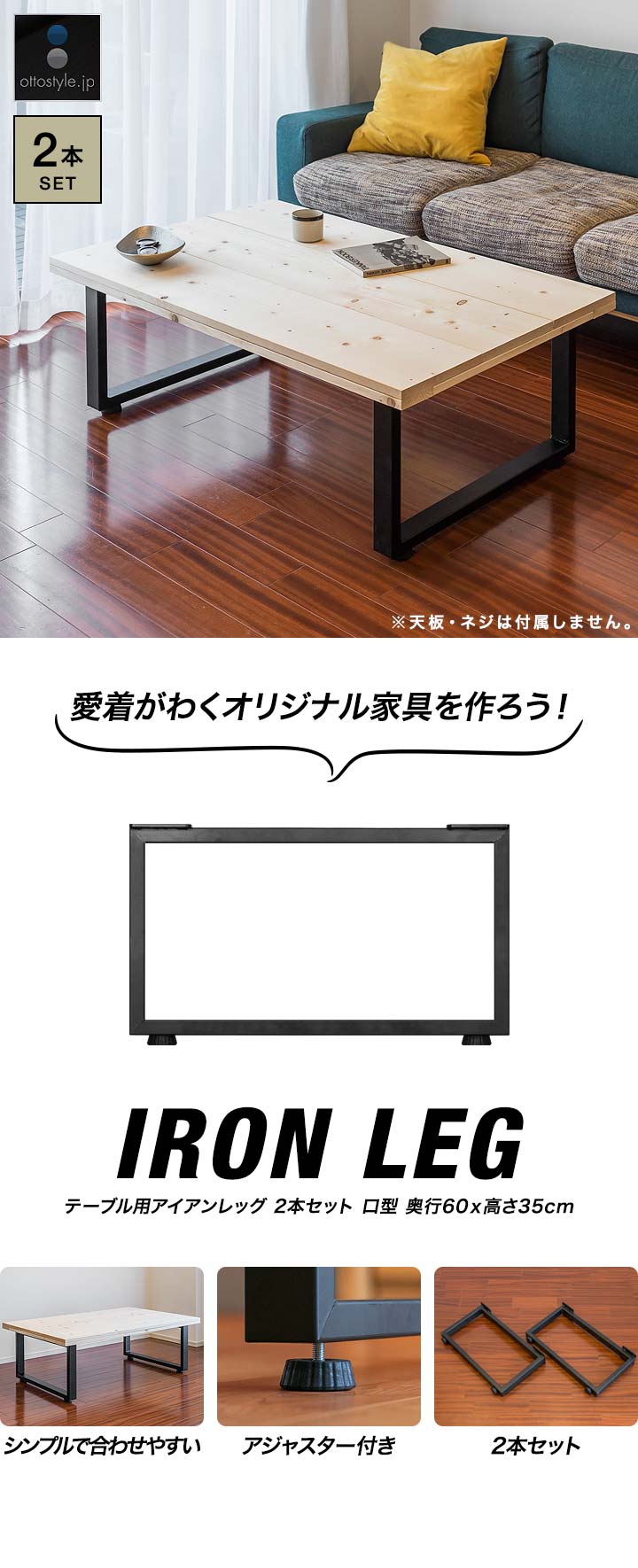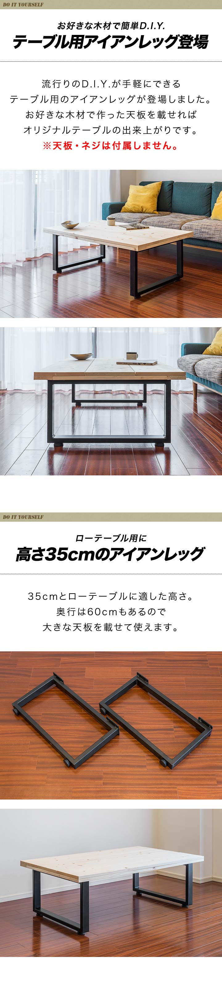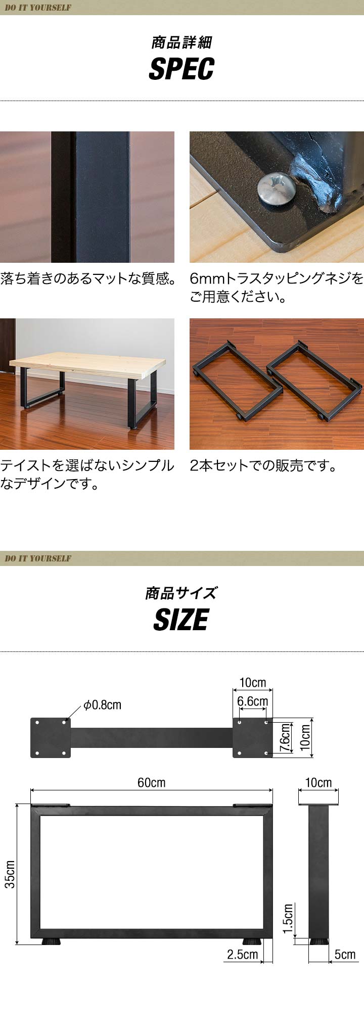 テーブル 脚 パーツ 2本セット 高さ35cm×奥行60cm アイアンレッグ 鉄 スチール 自作 DIY リメイク かんたん ローテーブル ソファーテーブル デスク 交換 テーブル脚 2本組 口型/角 ブラック ※脚のみ 送料無料