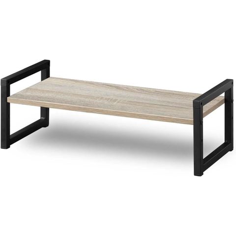 モニター台 机上台 幅60cm 2段 (オーク/ブラックフレーム) モニタースタンド 奥行25cm×高さ10cm/15cm/20cm 高さ調整 3段階 卓上 キーボード収納 木製 木目 卓上ラック PCモニター台 パソコン ラック 机上ラック コンパクト オフィス収納 デスク上置棚 送料無料