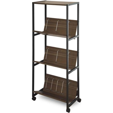 ファイルラック 斜め キャスター付き (ウォールナット/ブラックフレーム) 4段 ハイタイプ ファイルワゴン 本棚 収納棚 書類ラック A4 幅56cm 奥行31.5cm スリム スチールラック ファイル収納 ファイルボックス ファイルスタンド ファイル 書類 収納 オフィス収納 送料無料