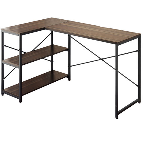 サイドラック付きデスク (ウォールナット) 幅120cm L字型 3段 収納ラック一体型 省スペース PCデスク L字デスク ワークデスク 作業机 書斎机 デスク 送料無料