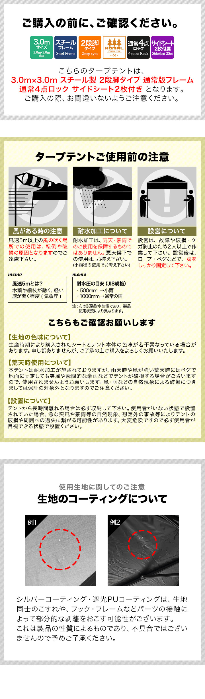 | 商品詳細(タープテント) |