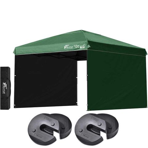 FIELDOOR ワンタッチタープテント 3m (遮光遮熱PU:グリーン/スチール/4点脚ロック/Dウエイト4点付/サイドシート2枚付) テント タープ ワンタッチ ワンタッチテント ワンタッチタープ UV加工 撥水 ベンチレーション 収納バッグ付 日よけ キャンプ 送料無料