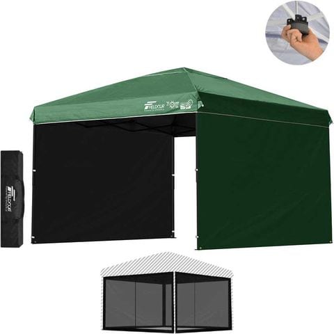 FIELDOOR ワンタッチタープテント 3m (遮光遮熱PU:グリーン/スチール/センターロック/Bバグガード付/サイドシート2枚付) テント タープ ワンタッチ ワンタッチテント ワンタッチタープ UV加工 撥水 ベンチレーション 収納バッグ付 日よけ キャンプ バーベキュー 送料無料