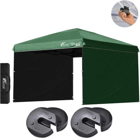 FIELDOOR ワンタッチタープテント 3m (遮光遮熱PU:グリーン/スチール/センターロック/Dウエイト4点付/サイドシート2枚付) テント タープ ワンタッチ ワンタッチテント ワンタッチタープ UV加工 撥水 ベンチレーション 収納バッグ付 日よけ キャンプ 送料無料