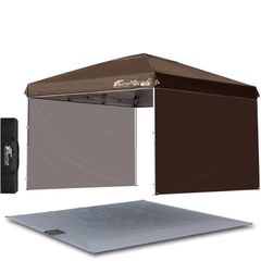 FIELDOOR ワンタッチタープテント 3m (標準:ダークブラウン/スチール/4点脚ロック/タープ本体のみ/サイドシート2枚付) テント タープ ワンタッチ ワンタッチテント ワンタッチタープ UV加工 撥水 ベンチレーション 収納バッグ付 日よけ キャンプ バーベキュー 送料無料