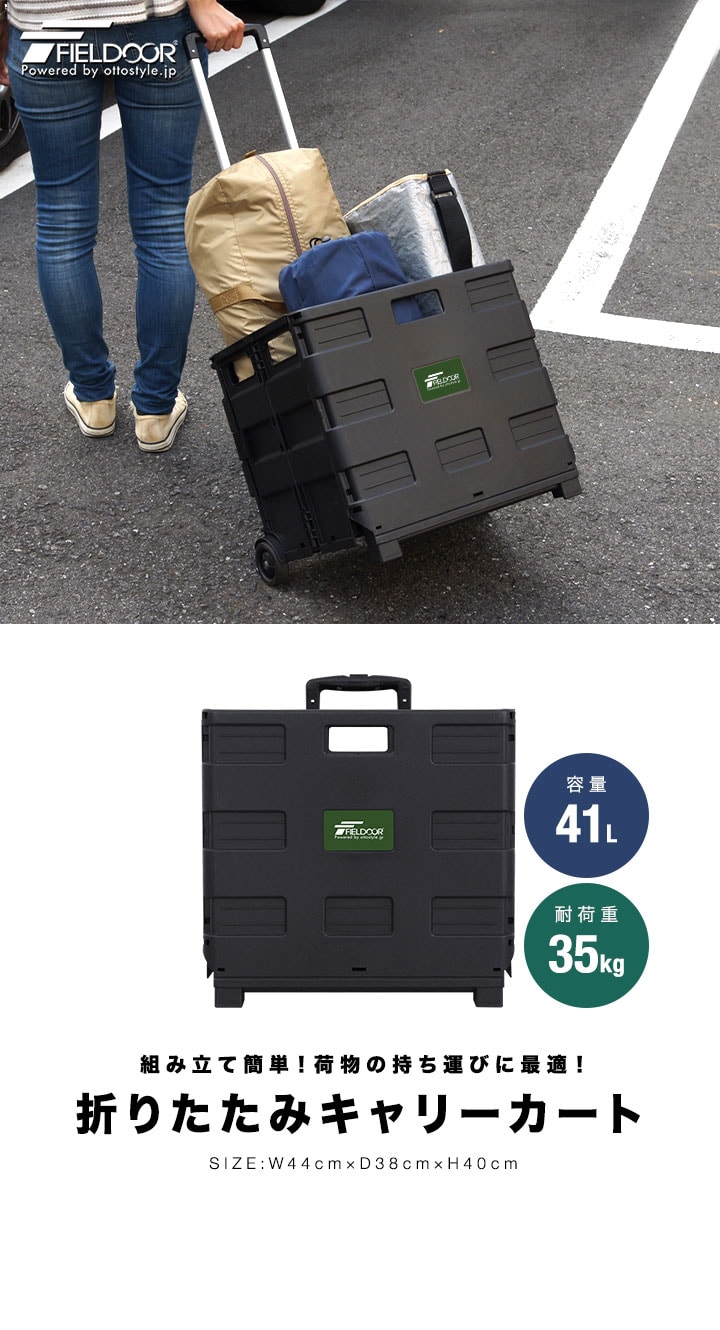 FIELDOOR 折りたたみキャリーカート (キャリーカート本体のみ) ショッピングカート ふた キャリーカート コンテナ カート エコバッグ キャリー 台車 アウトドア レジャー スポーツ 運動会 耐荷重35kg キャスター付き 便利 荷台 蓋 荷物運び 買い物 キャンプ フィールドア 送料無料