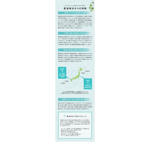 | 受信機能: 自動時刻補正(午前3時・午前4時・午前5時/日) |