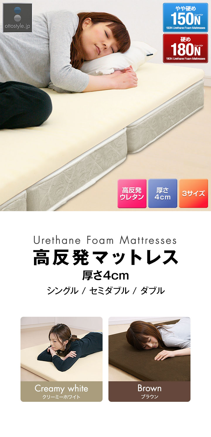 高反発 マットレス 4cm 薄型 (セミダブル/クリーミーホワイト/密度27D/硬さ150N) 硬め 高反発マットレス 高密度 27D 高反発ウレタン 体圧分散 へたりにくい 厚さ4cm 薄い S/SD/D 高反発マット 洗えるカバー マット ベッド 寝具 送料無料