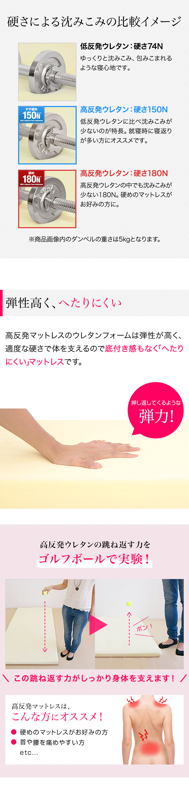| 材質: ・マットレス本体 : 高反発ウレタン ・カバー : ポリエステル100% |