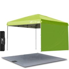 FIELDOOR ワンタッチタープテント 3m (標準:ライム/スチール/4点脚ロック/タープ本体のみ/サイドシート1枚付) テント タープ ワンタッチ ワンタッチテント ワンタッチタープ UV加工 撥水 ベンチレーション 収納バッグ付 日よけ キャンプ バーベキュー 送料無料