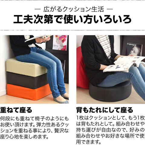 座布団 クッション 低反発 (ベージュ/4個セット) 高反発 両面 3層 PVCレザークッション 45×45cm×厚手15cm 四角/スクエア PVCカバー 座ぶとん 代わり 腰 お尻 フロアクッション 高さ調整 背もたれ 椅子用 チェアクッション 送料無料