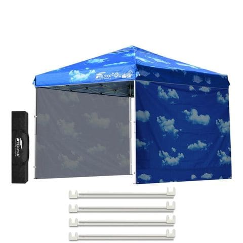 FIELDOOR ワンタッチタープテント 2.5m (標準:ブルースカイ/スチール/4点脚ロック/A強化サポート付/サイドシート2枚付) テント タープ ワンタッチ ワンタッチテント ワンタッチタープ UV加工 撥水 ベンチレーション 収納バッグ付 日よけ キャンプ バーベキュー 送料無料