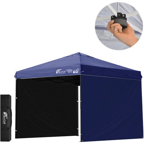 FIELDOOR ワンタッチタープテント 2.5m (遮光遮熱PU:ブルー/スチール/センターロック/タープ本体のみ/サイドシート2枚付) 横幕セット 頑丈 スチール タープ 250 ワンタッチテント ワンタッチタープ 大型 簡単 UVカット 撥水 日よけ イベント アウトドア キャンプ 送料無料