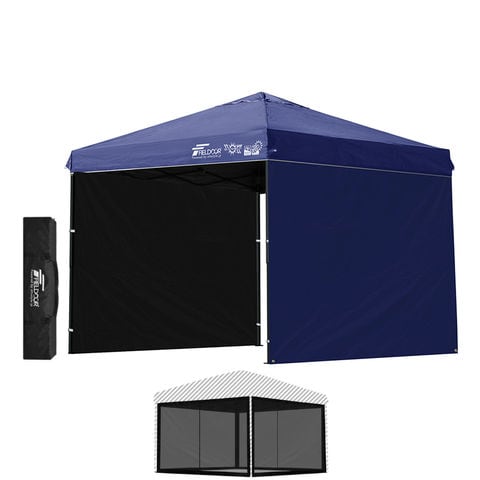 FIELDOOR ワンタッチタープテント 2.5m (遮光遮熱PU:ブルー/スチール/4点脚ロック/Bバグガード付/サイドシート2枚付) 横幕セット 頑丈 スチール タープ 250 ワンタッチテント ワンタッチタープ 大型 簡単 UVカット 撥水 日よけ イベント アウトドア キャンプ 送料無料