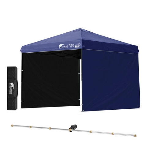 FIELDOOR ワンタッチタープテント 2.5m (遮光遮熱PU:ブルー/スチール/4点脚ロック/Cミストシャワー付/サイドシート2枚付) 横幕セット 頑丈 スチール タープ 250 ワンタッチテント ワンタッチタープ 大型 簡単 UVカット 撥水 日よけ イベント アウトドア キャンプ 送料無料