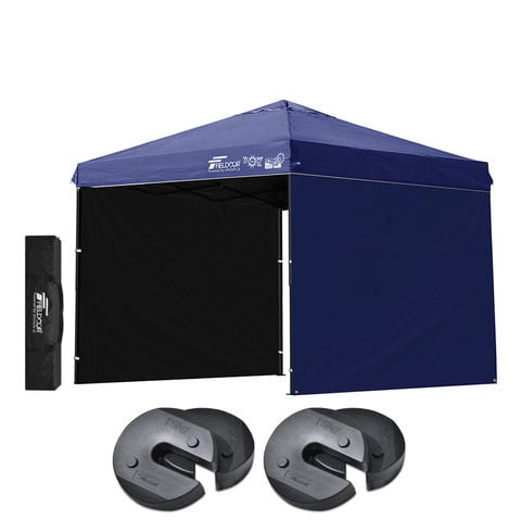 FIELDOOR ワンタッチタープテント 2.5m (遮光遮熱PU:ブルー/スチール/4点脚ロック/Dウエイト4点付/サイドシート2枚付) 横幕セット 頑丈 スチール タープ 250 ワンタッチテント ワンタッチタープ 大型 簡単 UVカット 撥水 日よけ イベント アウトドア キャンプ 送料無料