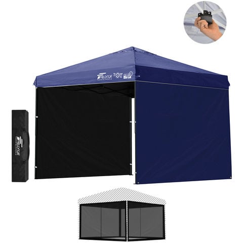 FIELDOOR ワンタッチタープテント 2.5m (遮光遮熱PU:ブルー/スチール/センターロック/Bバグガード付/サイドシート2枚付) 横幕セット 頑丈 スチール タープ 250 ワンタッチテント ワンタッチタープ 大型 簡単 UVカット 撥水 日よけ イベント アウトドア キャンプ 送料無料