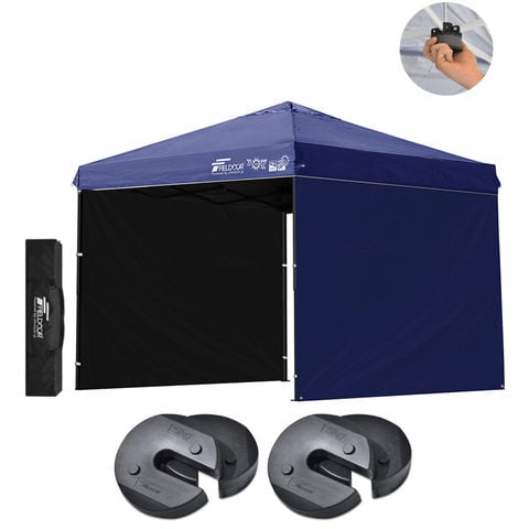FIELDOOR ワンタッチタープテント 2.5m (遮光遮熱PU:ブルー/スチール/センターロック/Dウエイト4点付/サイドシート2枚付) 横幕セット 頑丈 スチール タープ 250 ワンタッチテント ワンタッチタープ 大型 簡単 UVカット 撥水 日よけ イベント アウトドア キャンプ 送料無料