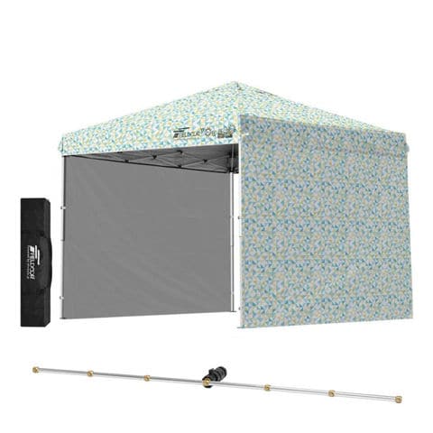 FIELDOOR ワンタッチタープテント 2.5m (標準:トライアングルホワイト/スチール/4点脚ロック/Cミストシャワー付/サイドシート2枚付) 横幕セット スチール タープ 250 ワンタッチテント ワンタッチタープ 大型 UVカット 撥水 日よけ イベント アウトドア キャンプ 送料無料