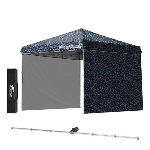 FIELDOOR ワンタッチタープテント 2.5m (標準:トライアングルネイビー/スチール/4点脚ロック/Cミストシャワー付/サイドシート2枚付) 横幕セット スチール タープ 250 ワンタッチテント ワンタッチタープ 大型 UVカット 撥水 日よけ イベント アウトドア キャンプ 送料無料