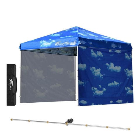 FIELDOOR ワンタッチタープテント 2.5m (標準:ブルースカイ/スチール/4点脚ロック/Cミストシャワー付/サイドシート2枚付) 横幕セット 頑丈 スチール タープ 250 ワンタッチテント ワンタッチタープ 大型 簡単 UVカット 撥水 日よけ イベント アウトドア キャンプ 送料無料
