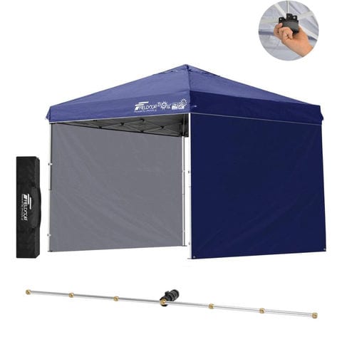 FIELDOOR ワンタッチタープテント 2.5m (標準:ブルー/スチール/センターロック/Cミストシャワー付/サイドシート2枚付) 横幕セット 頑丈 スチール タープ 250 ワンタッチテント ワンタッチタープ 大型 簡単 UVカット 撥水 日よけ イベント アウトドア キャンプ 送料無料