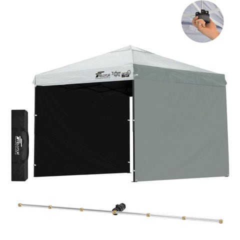FIELDOOR ワンタッチタープテント 2.5m (遮光遮熱PU:グレー/スチール/センターロック/Cミストシャワー付/サイドシート2枚付) 横幕セット スチール タープ 250 ワンタッチテント ワンタッチタープ 大型 簡単 UVカット 撥水 日よけ イベント アウトドア キャンプ 送料無料