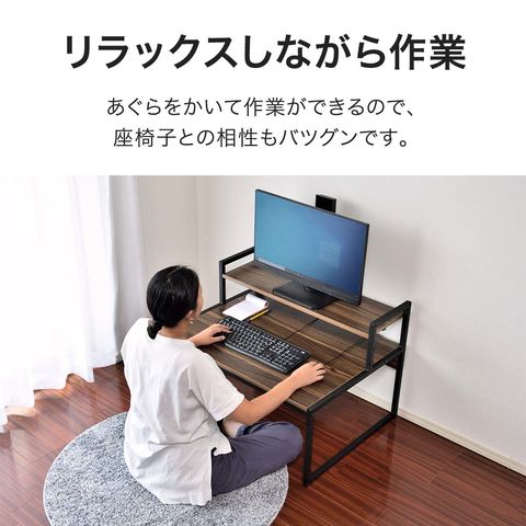 パソコンデスク ロータイプ 幅80cm (ダークブラウン/ブラック) モニター台付き 省スペース スリム 天板80×60cm PCデスク ワークデスク 作業机 書斎 勉強机 PC机 木目 おしゃれ シンプル 机 座卓 テーブル 北欧 モダン 在宅勤務 テレワーク 新生活 送料無料のレビュー