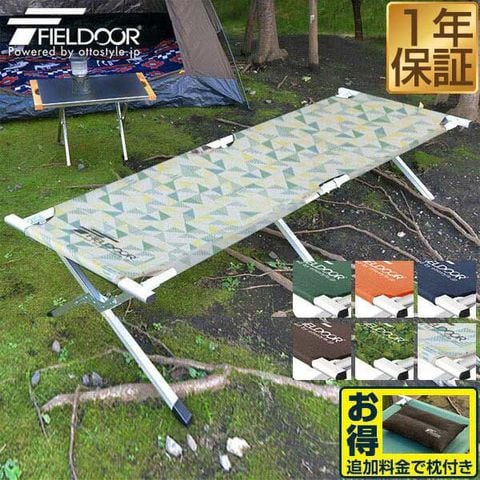 FIELDOOR アウトドアコット (コット本体のみ/グリーン) 190cm×69cm 折りたたみ ベッド コット ベンチ レジャーコット チェア 椅子 イス キャンプ 荷物置き 送料無料