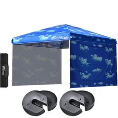 FIELDOOR ワンタッチタープテント 3m (標準:ブルースカイ/スチール/4点脚ロック/タープ本体のみ/サイドシート2枚付) テント タープ ワンタッチ ワンタッチテント ワンタッチタープ UV加工 撥水 ベンチレーション 収納バッグ付 日よけ キャンプ バーベキュー 送料無料