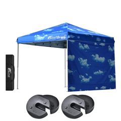 FIELDOOR ワンタッチタープテント 2.5m (標準:ブルースカイ/スチール/4点脚ロック/タープ本体のみ/サイドシート1枚付) テント タープ ワンタッチ ワンタッチテント ワンタッチタープ UV加工 撥水 ベンチレーション 収納バッグ付 日よけ キャンプ バーベキュー 送料無料