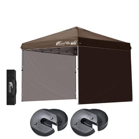 FIELDOOR ワンタッチタープテント 2.5m (標準:ダークブラウン/アルミ/4点脚ロック/Dウエイト4点付/サイドシート2枚付) 軽量 テント タープ ワンタッチテント ワンタッチタープ UV加工 撥水 ベンチレーション 収納バッグ付 日よけ キャンプ 送料無料
