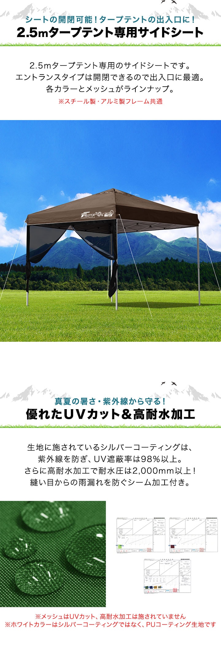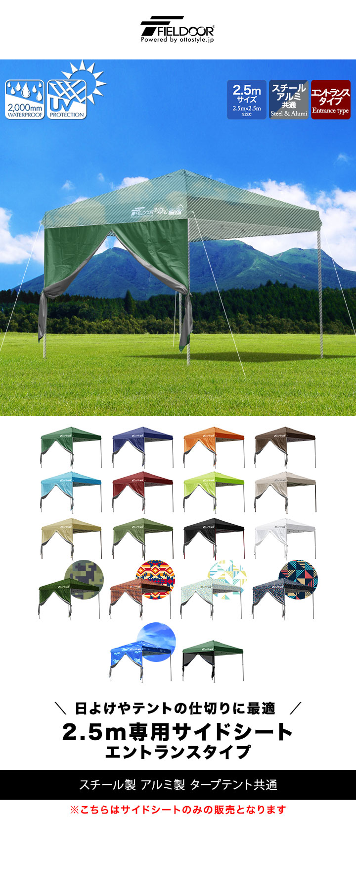 FIELDOOR ワンタッチタープ 2.5m専用 (エントランス:ノーマル/標準ポリエステル:カモフラージュ/グリーン) サイドシート 横幕 250cm ウォールスクリーン 追加オプション ワンタッチタープ専用 日よけ 目隠し シェード ※タープテント本体別売 送料無料