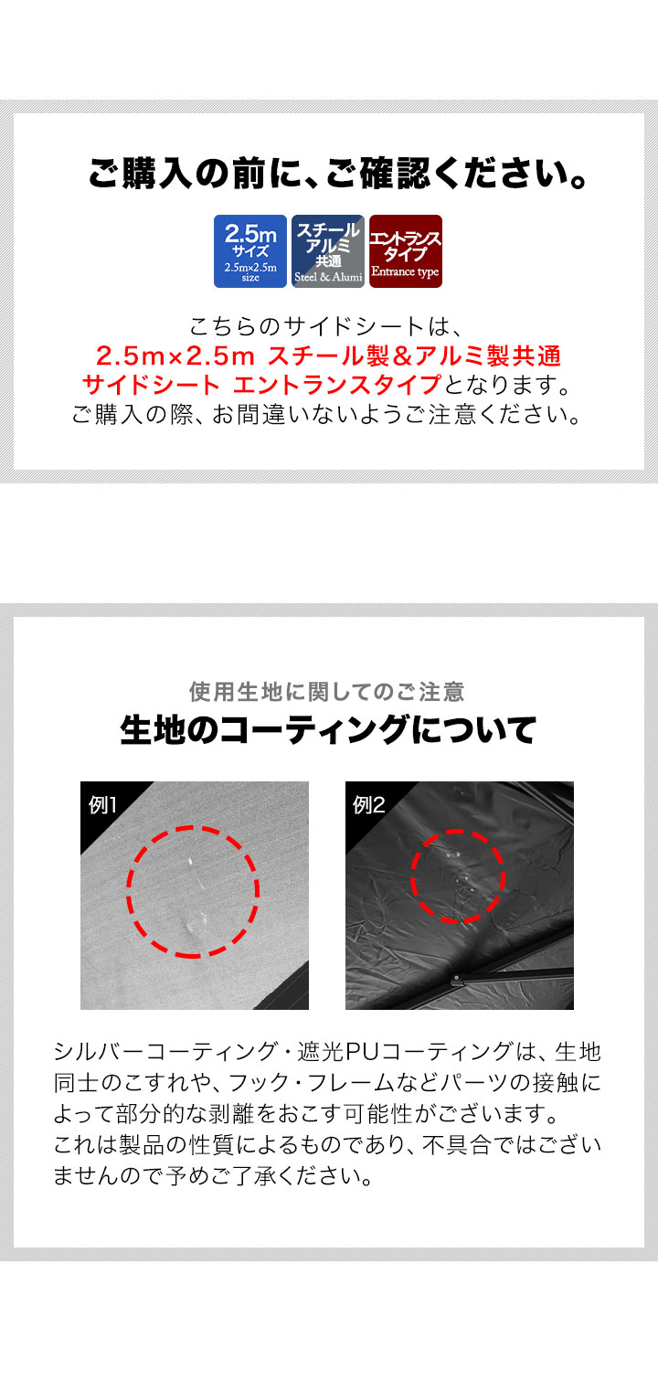| サイズ: 2.5m×2.5m タープテント専用(スチール製・アルミ製共通) |