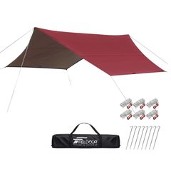 FIELDOOR タープテント ヘキサタープ 大型 Lサイズ 530cm×570cm 6人~8人用 (ボルドー:標準/本体&スチールポール2組セット) 日よけ 六角形 UVカット 高耐水 簡易テント サンシェード オーニング コンパクト アウトドア BBQ キャンプ 送料無料