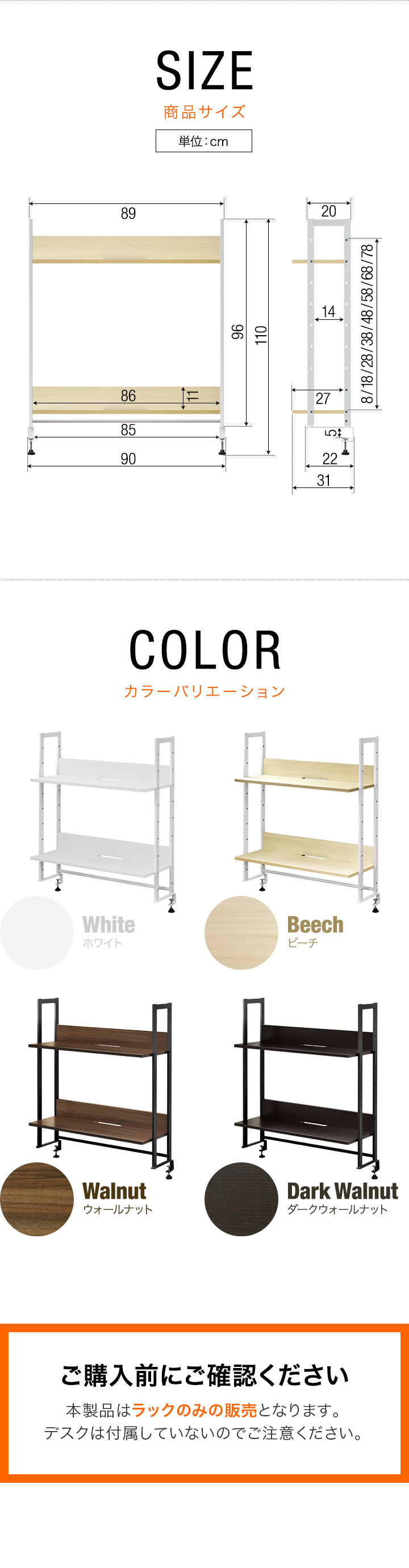 机上ラック 机上台 幅90cm 2段 (ビーチ/ホワイトフレーム) 上置棚 卓上棚 モニター台 モニタースタンド 奥行31cm×高さ110cm 高さ調整 木目 クランプ固定 デスクボード キーボード収納 本棚 卓上 台 パソコンデスク 机上ラック OAラック デスク上置棚 送料無料