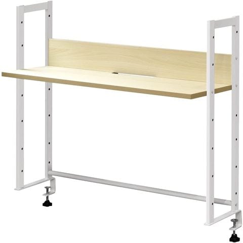 机上ラック 机上台 (ビーチ/幅90×高さ71.5cm/棚板1段) 上置棚 卓上棚 モニター台 モニタースタンド 奥行31cm×高さ78cm 高さ調整 木目 クランプ固定 デスクボード キーボード収納 本棚 卓上 台 パソコンデスク 机上ラック OAラック デスク上置棚 送料無料
