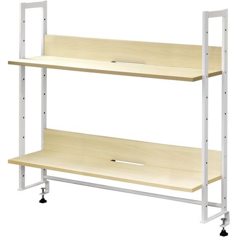 机上ラック 机上台 (ビーチ/幅110×高さ96cm/棚板2段) 上置棚 卓上棚 モニター台 モニタースタンド 奥行31cm×高さ110cm 高さ調整 木目 クランプ固定 デスクボード キーボード収納 本棚 卓上 台 パソコンデスク 机上ラック OAラック デスク上置棚 送料無料