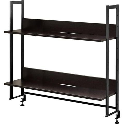 机上ラック 机上台 (ダークウォールナット/幅110×高さ96cm/棚板2段) 上置棚 卓上棚 モニター台 モニタースタンド 奥行31cm×高さ110cm 高さ調整 木目 クランプ固定 デスクボード キーボード収納 本棚 卓上 台 パソコンデスク 机上ラック OAラック デスク上置棚 送料無料