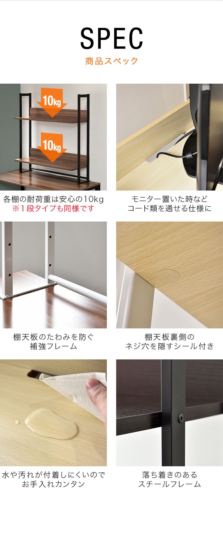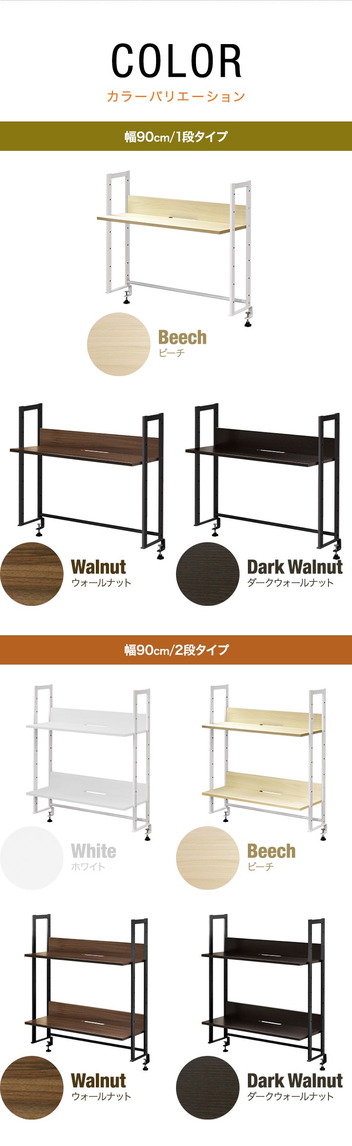 | カラー: ・ホワイト(※幅90cm/2段タイプのみ) ・ビーチ ・ウォールナット ・ダークウォールナット |