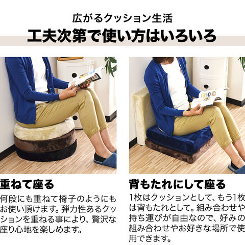 座布団 クッション 低反発 (ブラウン/スクウェアタイプ/角型) 高反発 両面 3層 コンビクッション 45×45cm×厚手8cm 四角 フランネルカバー 座ぶとん 腰 お尻に優しい フロアクッション 椅子用 チェアクッション シートクッション ざぶとん 送料無料