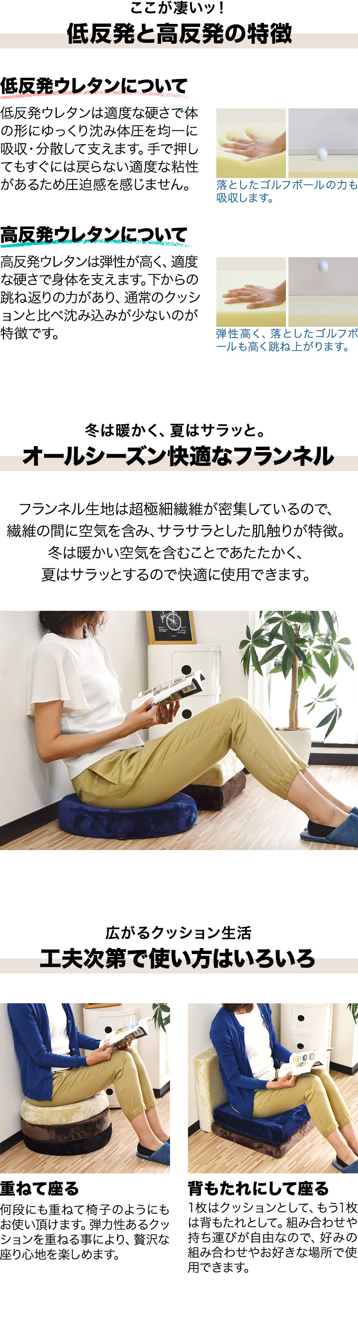 座布団 クッション 低反発 高反発 両面 3層 コンビクッション (スクエア/ブラック) 45×45cm×厚手8cm 四角 フランネルカバー 座ぶとん 腰 お尻に優しい フロアクッション 椅子用 チェアクッション シートクッション ざぶとん 送料無料