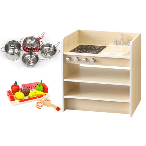 RiZKiZ ままごと キッチン (ビーチ/本体&お鍋&フルーツセット) 2WAYタイプ 木製 ごっこ遊び ままごとキッチン 子供 子ども 3歳~ ままごとセット ままごとキッチンセット 収納 台所 おもちゃ 玩具 お料理 知育玩具 キッズ収納 お片付け クリスマス 送料無料